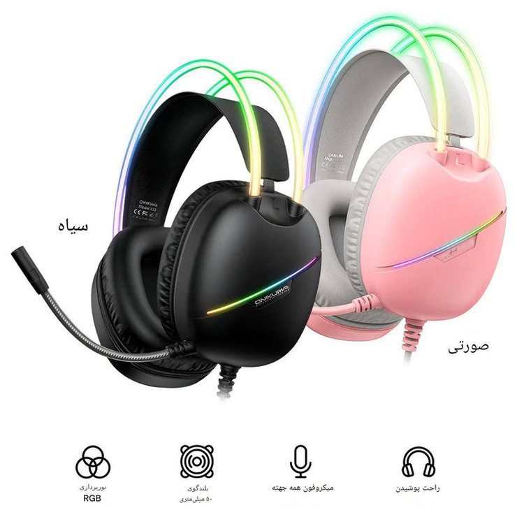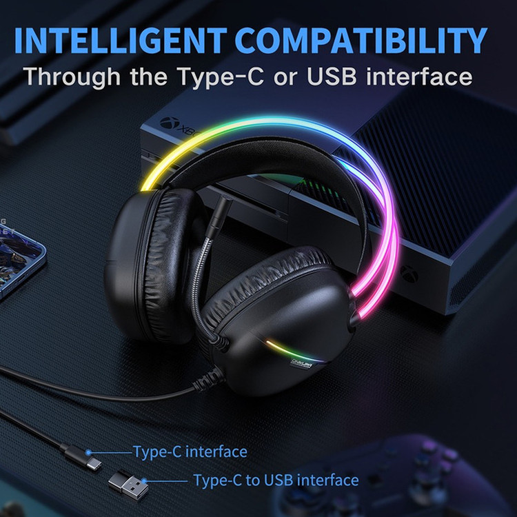 هدست گیمینگ اونیکوما X33 محصولی از برند محبوب ONIKUMA می باشد که با نورپردازی RGB مزین شده است. اگر یک بازیکن معمولی یا حرفه ای باشید، این هدست بازی های شما را روح میبخشد و تمام جزئیات صدا را با دقت ارائه می دهد. با حذف نویز و صدای فراگیر شفاف به شما امکان می دهد تا گام ها، تیراندازی و نشانه های محیطی را بشنوید که به شما کمک می کند یک قدم جلوتر از رقیب خود بمانید. رابط اتصال این هدست از طریق پورت USB و Type C و انرژی مورد نیاز نورپردازی هدست X33 از طریق همین پورت تأمین میگردد