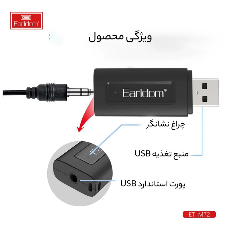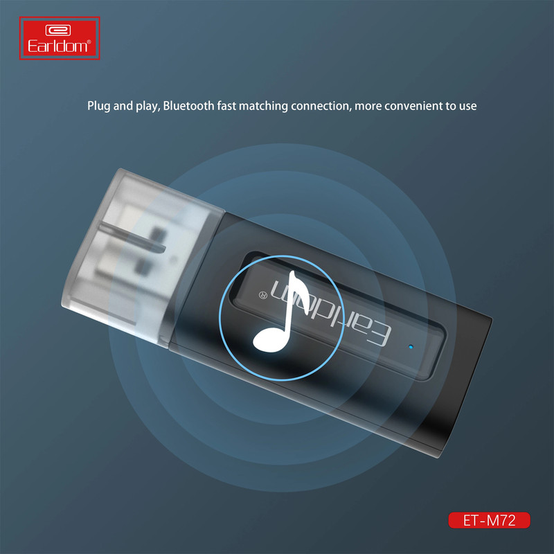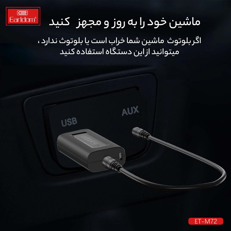 اگر ضبط های قدیمی داخل خودرو و یا اسپیکرهای موجود در منزل فاقد بلوتوث هستند. گیرنده بلوتوث ارلدام Earldom M72 این مسئله را به راحتی حل نموده است به طوریکه که دیگر نیازی به تعویض ضبط ماشین نخواهد بود. گیرنده موزیک ماشین به پورت USB ضبط متصل می شود و یک ضبط صوت یا اسپیکر سیمی را به یک ضبط صوت بلوتوثی تبدیل می کند. این گجت یک دریافت کننده بلوتوثی است که کاربر را از اتصال سیمی بی نیاز خواهد کرد. بنابراین اگر ضبط خودروی شما از فناوری بلوتوث پشتیبانی نمی کند، لازم نیست هزینه های زیادی برای تهیه یک ضبط صوت مدرن تر را پرداخت کنید. این گیرنده با داشتن فناوری بلوتوث سیستم صوتی بودن بلوتوث را به روز رسانی می کند، به گونه ای که می توانید وایرلس از آن استفاده کنید. با روشن کردن بلوتوث گوشی موبایل خود میتوانید اتصالی میان گوشی و ضبط ماشین برقرار نمایید. گیرنده موزیک M22 علاوه بر بلوتوث به پورت AUX نیز مجهز میباشد و کاربران میتوانند با استفاده از کابل AUX موجود به ضبط خودرو متصل شوند. با اتصال از طریق کابل 3.5mm به صورت AUX اسپیکر و تامین برق آن از طریق پورت USB شما می توانید گوشی یا کامپیوتر خود رابه صورت مستقیم از طریق بلوتوث به سیستم صوتی متصل کنید. خروجی این دستگاه از طریق کابل AUX است و AUX دستگاه شما حتما باید سالم باشد و پورت USB فقط جهت تامین برق مورد نیاز می باشد و می توان آن را به شارژر فندکی و یا حتی پاوربانک متصل نمود.