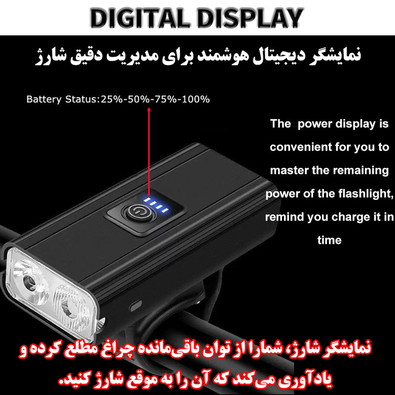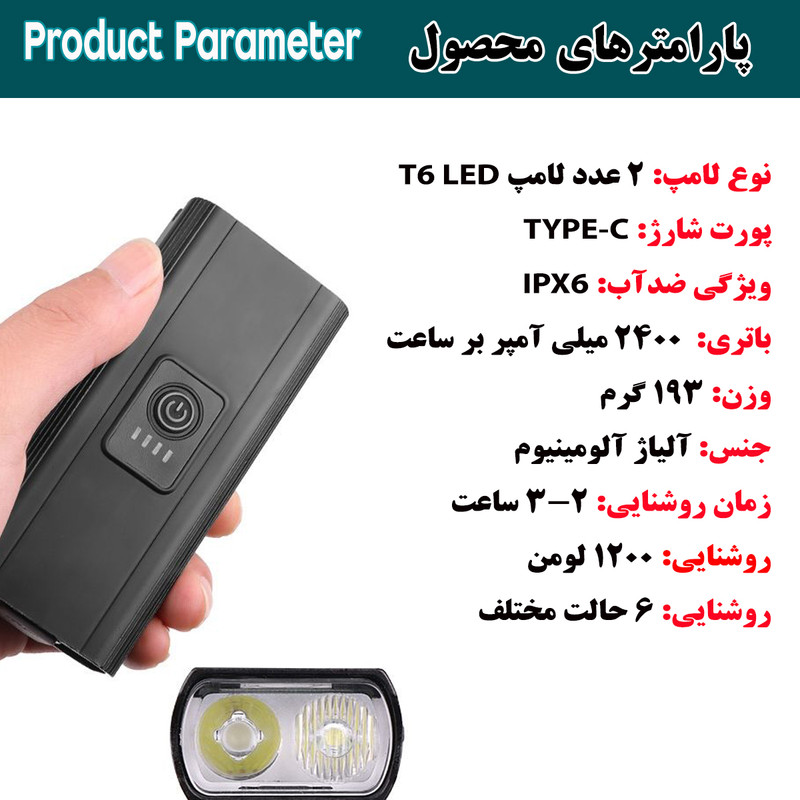 چراغ با نور سیلابی(Floodlight)، زاویه دید وسیعی دارد و چراغ نقطه ای (Spotlight) برد زیادی را برای شما به ارمغان می دهد. این محصول با مصرف پایین انرژی و باتری با ظرفیت 2400 میلی آمپر برای شما نوید بخش یک دوچرخه سواری طولانی و با نوردهی عالی (1000 لومن / برد 200 متر) است.