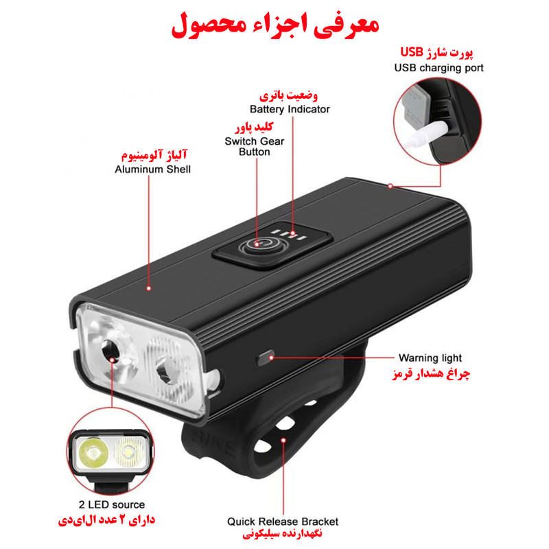 در این محصول شما شش حالت نور برای انتخاب دارید و پس از پایان دوچرخه سواری، میتوانید به راحتی آن را جدا کرده و به خانه ببرید.