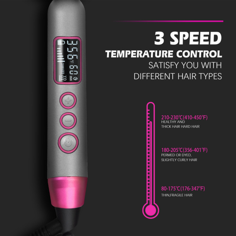 بر روی دسته برس حرارتی دی اس پی dsp-10248 دکمه پاور و دکمه های مثبت و منفی قرار دارند. دکمه پاور جهت روشن و خاموش کردن دستگاه استفاده می شود. دکمه های + و – برای تنظیم دما(قابل تنظیم در 14 دما از 730 تا 990 درجه ی فارنهایت)، افزایش و کاهش درجه حرارت دندانه ها کاربرد دارند. شما می توانید با توجه به جنس و ضخامت موهایتان دستگاه را روی درجه حرارت مناسب قرار دهید. بعد از تنظیم دما در حدود 2 تا 3 دقیقه طول می کشد تا دندانه ها داغ و به دمای دلخواه شما برسند.