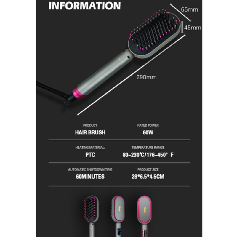 صفحه نمایش دیجیتالی، درجه حرارت را نمایش می دهد. برس حرارتی dsp-10248 با برق مستقیم کار می کند. سیم دار بودن دستگاه باعث شده موقع صاف کردن موها نگرانی تمام شدن شارژ و خاموش شدن آن را نداشته باشید. این برس حرارتی با ولتاژ برق جهانی 220 تا 240 ولت و فرکانس 50 تا 60 هرتز کار می کند.